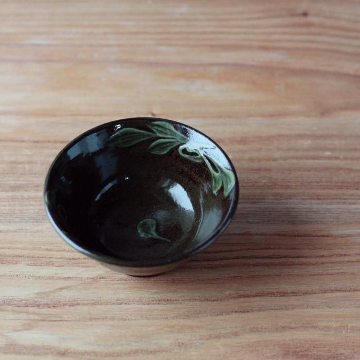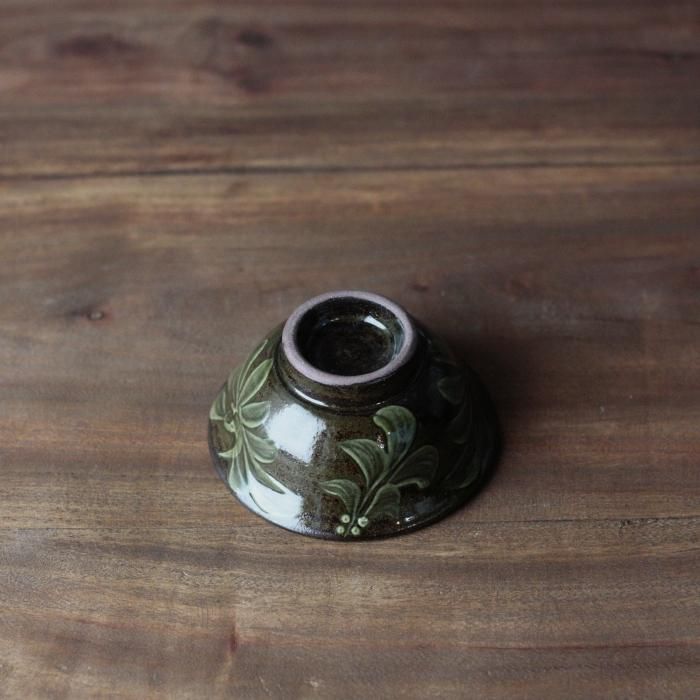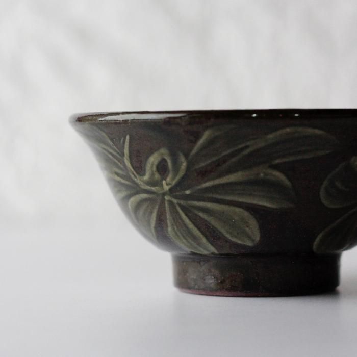 深い緑色地に浮かび上がる唐草模様が美しいやちむんのマカイ。マカイとは沖縄の言葉で「碗」のこと。小ぶりなものはご飯茶碗として、大きなサイズはおそばや丼物をよそうことができるものまで、幅広くいろんな種類があります。