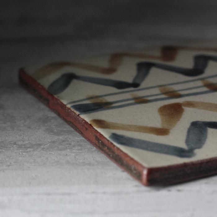 自由なタッチで描かれた波模様が面白い、やちむんの陶板。