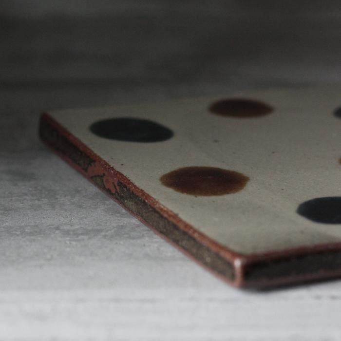 伝統の点打ち模様が味わいある、やちむんの陶板。