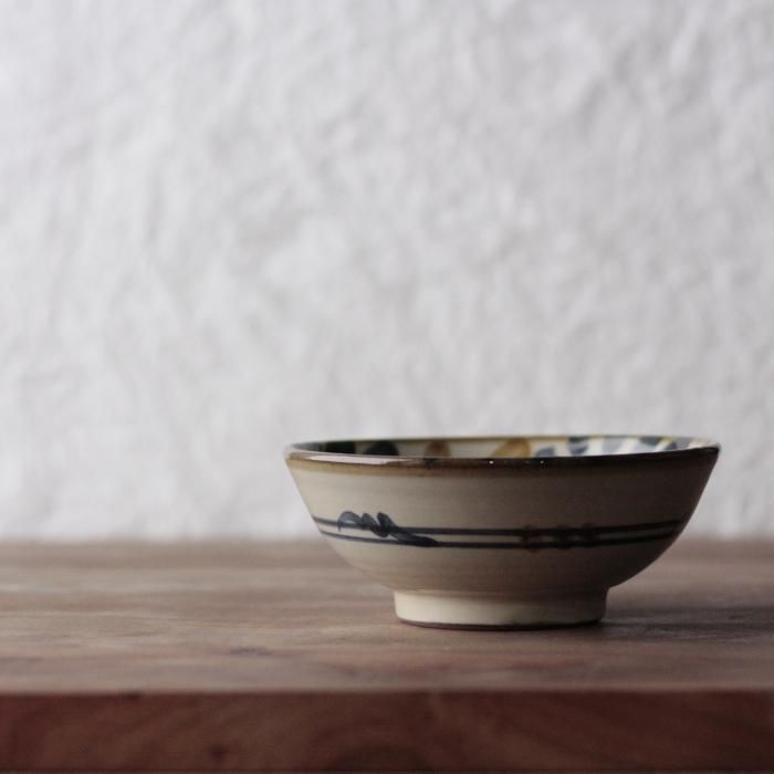 落ち着いた彩りだけど、どこか華やかな雰囲気が漂うボウル。ほど良い深さの器は、朝食の時にはサラダを入れたりヨーグルト入れるデザートボウルとして。夕食の時には煮物など少し汁気のあるお惣菜を盛りつけるのにちょうどいい感じですよ。